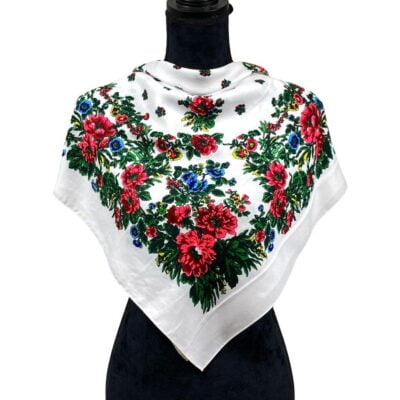 Batic Traditional, Dama, Viscoza, 77 x 77 cm, Alb/Roz/Verde