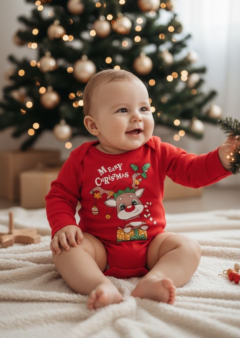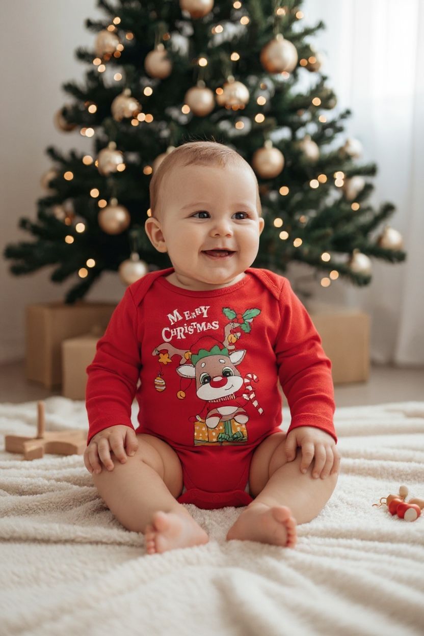 Body Bebe, Tematica Craciun, Merry Christmas, Ren, Rosu