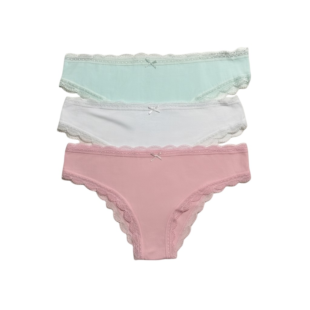 Set 3 perechi chiloți din bumbac cu dantelă – confort și feminitate zilnică
