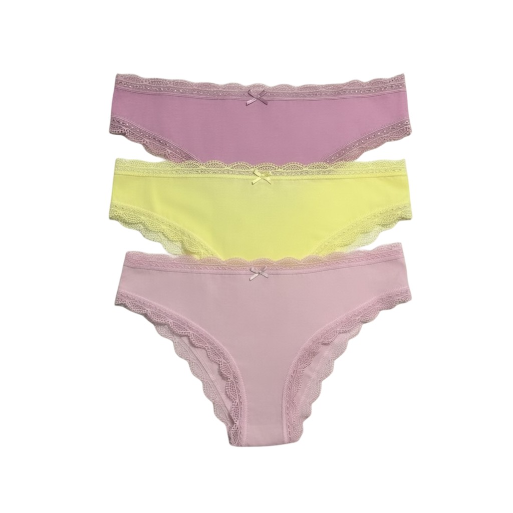 Set 3 perechi chiloți din bumbac cu dantelă – confort și feminitate zilnică