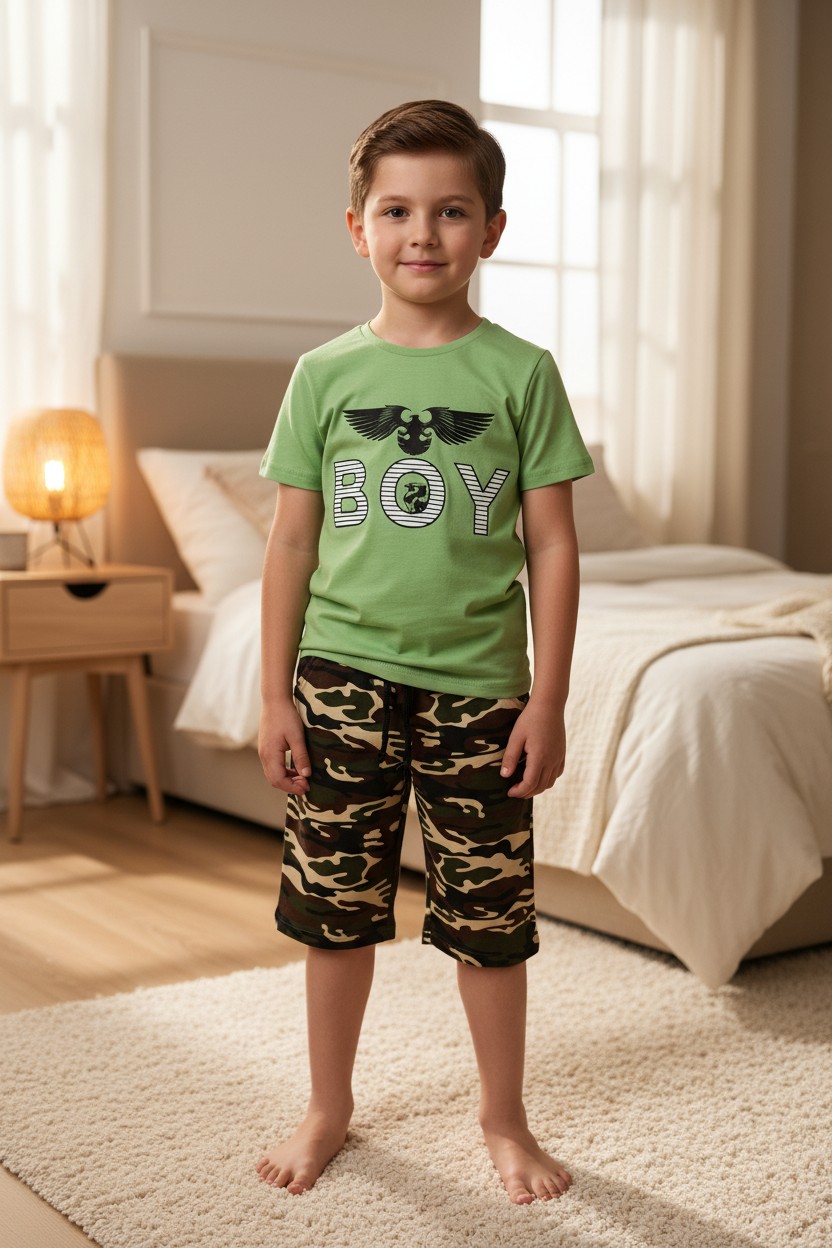 Compleu pentru copii cu tricou maneca scurta si pantaloni 3/4 cu imprimeu de calitate superioara. Compleul este lejer si delicat, confectionat din bumbac de calitare superioara astfel incat copilul tau sa se simta relaxat si confortabil. Alege masura potrivita 3,4,5,6 sau 7 ani.