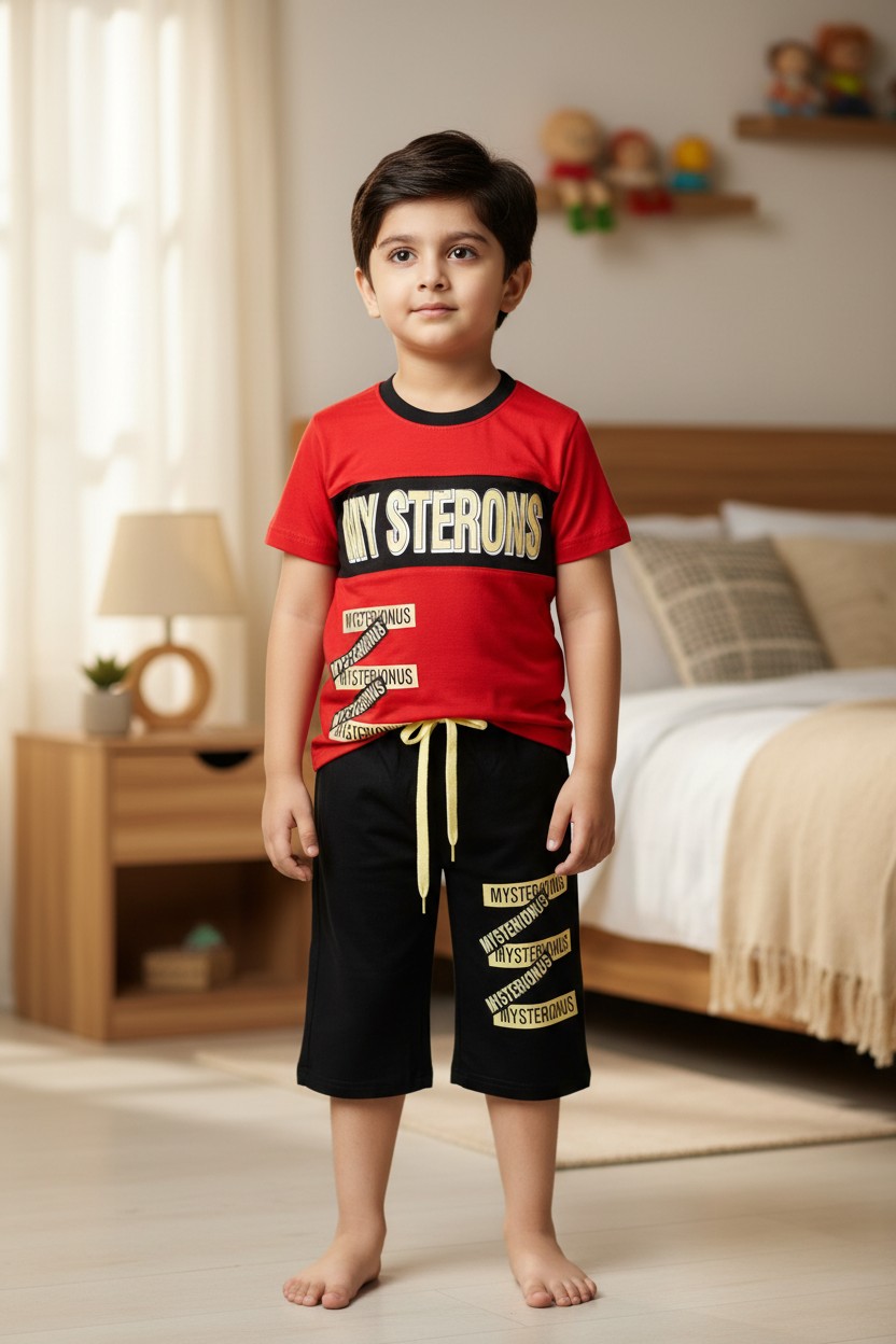 Compleu pentru copii cu tricou maneca scurta si pantaloni 3/4 cu imprimeu de calitate superioara. Compleul este lejer si delicat, confectionat din bumbac de calitare superioara astfel incat copilul tau sa se simta relaxat si confortabil. Alege masura potrivita 3,4,5,6 sau 7 ani.