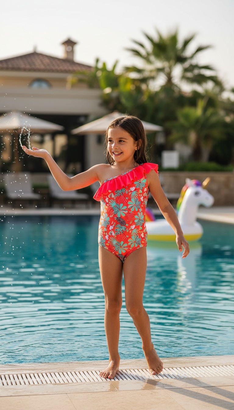 Costum de baie întreg pentru fetițe – portocaliu cu frunze multicolore Un costum de baie vesel și jucăuș, perfect pentru micile iubitoare de apă! Realizat dintr-un material confortabil și elastic, acest costum întreg are o nuanță vibrantă de portocaliu, decorată cu un imprimeu tropical.