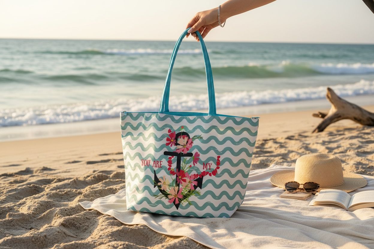 Geanta de plaja cu volum incapator ideala pentru a transporta prosoapele sau alte accesorii pentru plaja. Produsul dispune de manere rezistente din material textil, fermoar pentru inchidere si un buzunar interior pentru depozitarea banilor.