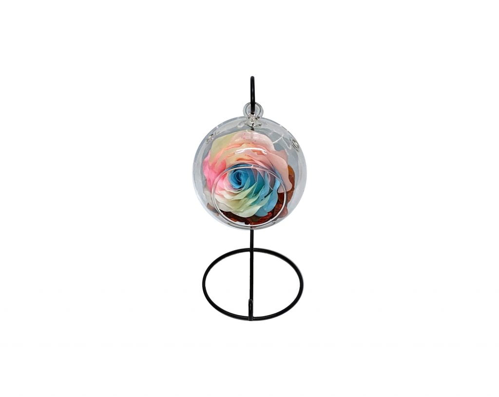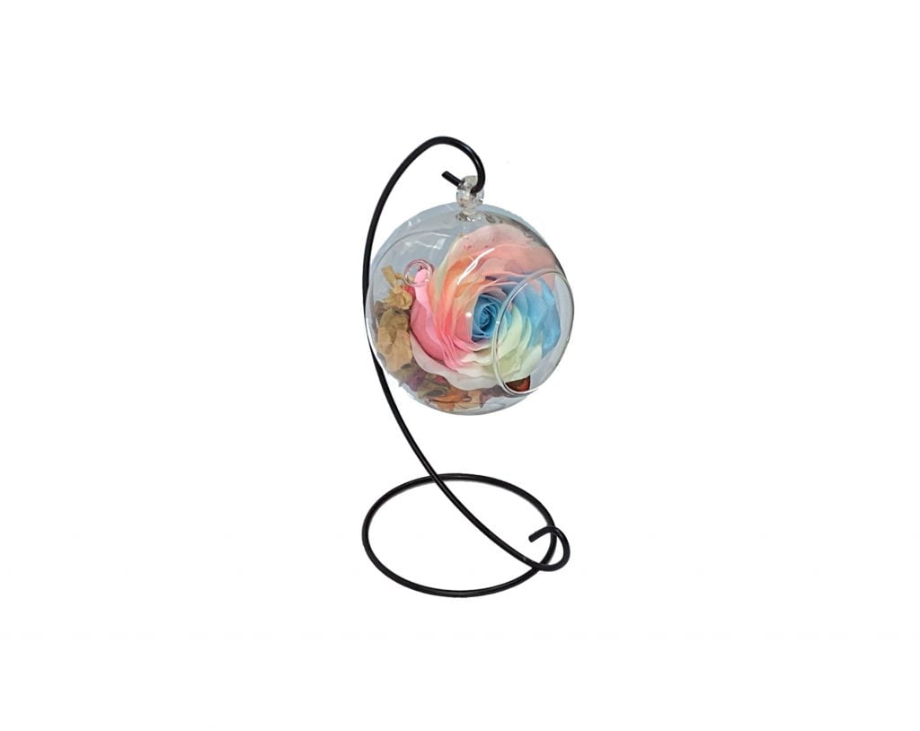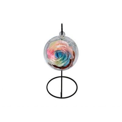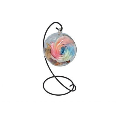 Glob din sticla, Trandafir Fosforescent, Multicolor, Stativ Metalic