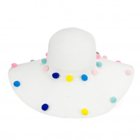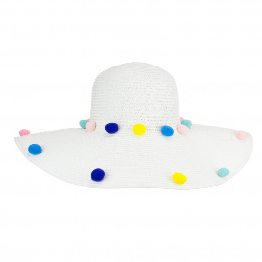Palarie de plaja, Femei, Accesorizata cu Ciucuri, Alb