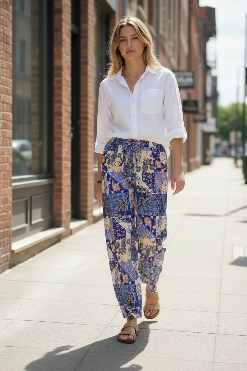 Pantaloni Dama, Casual , Motive Orientale, Albastru