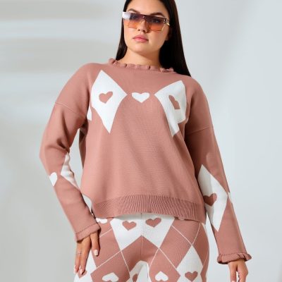 Compleu Tricot Femei, Doua Piese, Over Size, Casual, Maro Inchis